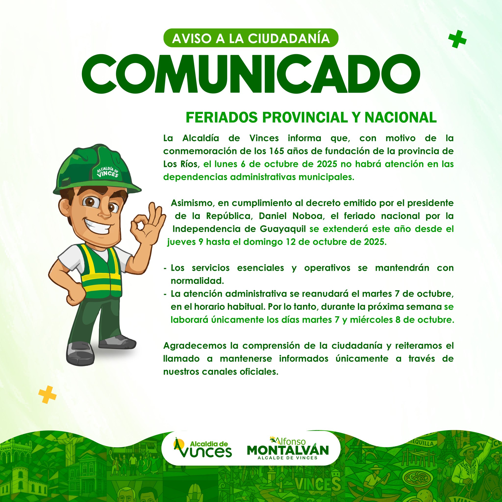 Encuentra los llamados públicos y anuncios generales del GAD Municipal de Vinces