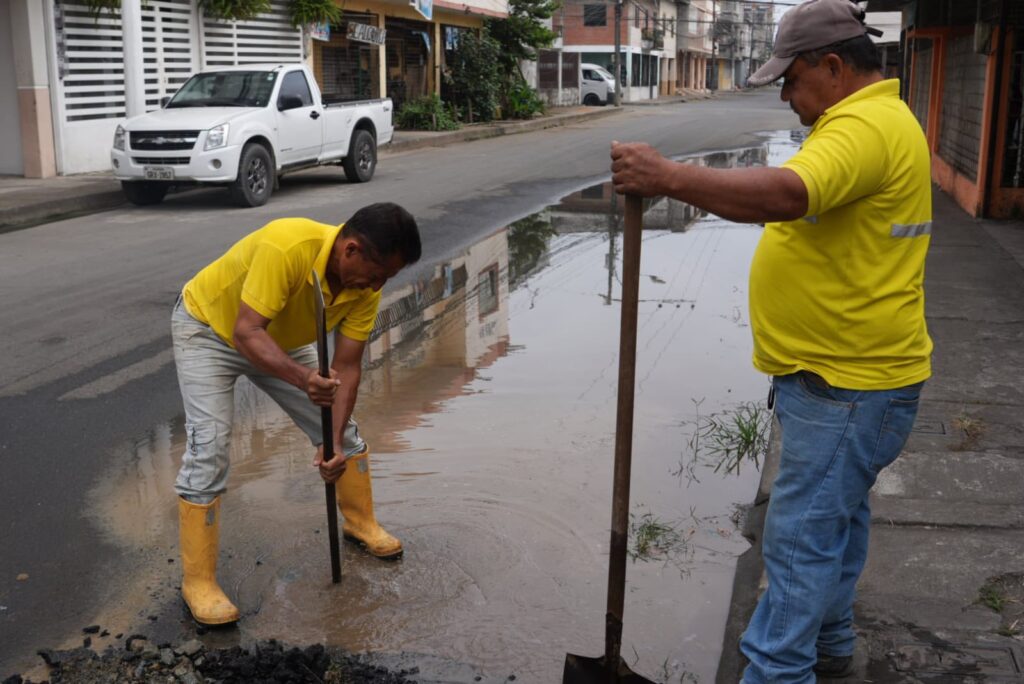 Atendiendo de manera oportuna a las necesidades de la ciudadanía, la Alcaldía de Vinces, a través de la Dirección de Agua Potable y Alcantarillado, ejecuta trabajos de reparación de fugas de agua en varios sectores de la ciudad. En esta ocasión, las labores se realizaron en la calle Tnte. Hugo Ortiz, entre Los Ríos y Córdova.