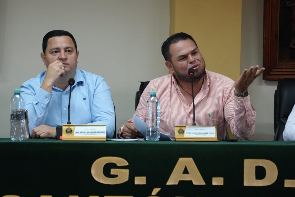 Hoy, en el salón de actos del GAD Municipal, se llevó a cabo la sesión semanal de Concejo, presidida por el alcalde Alfonso Montalvan Cerezo junto a los concejales.