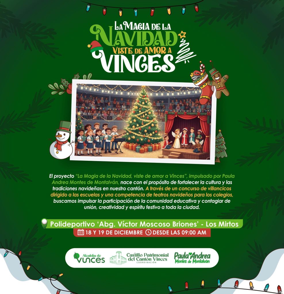 En esta Navidad, la Alcaldía de Vinces, junto a nuestro alcalde Alfonso Montalvan Cerezo, extiende un fraterno saludo a cada familia vinceña.