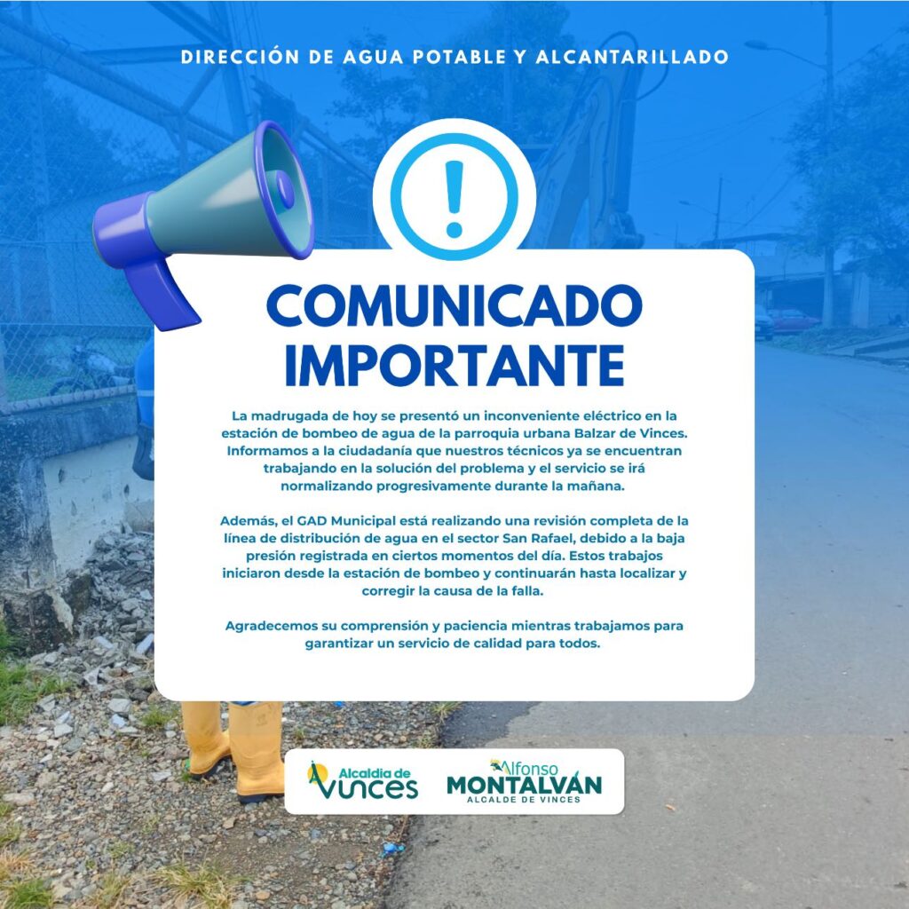 La Alcaldía de Vinces, a través del equipo de obreros de la Dirección de Agua…