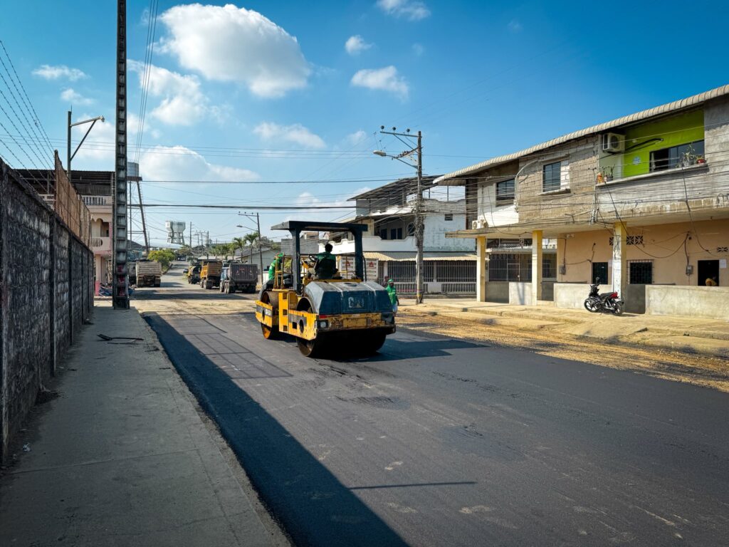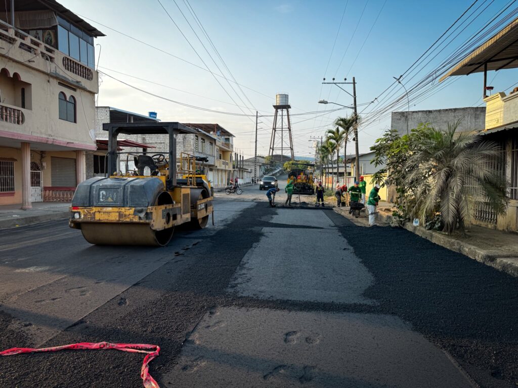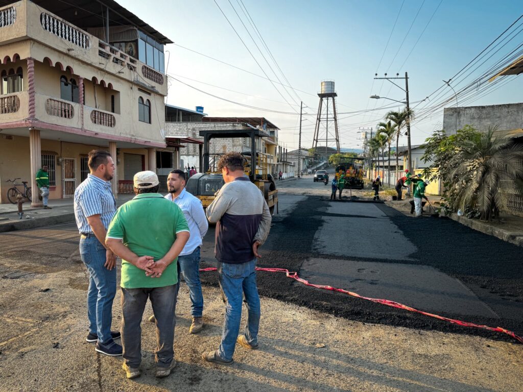 El alcalde Alfonso Montalvan Cerezo recorrió los trabajos de reasfaltado en un tramo de la avenida Machinaza, vía que conecta con el sector Loma del Tanque y la parroquia San Lorenzo.