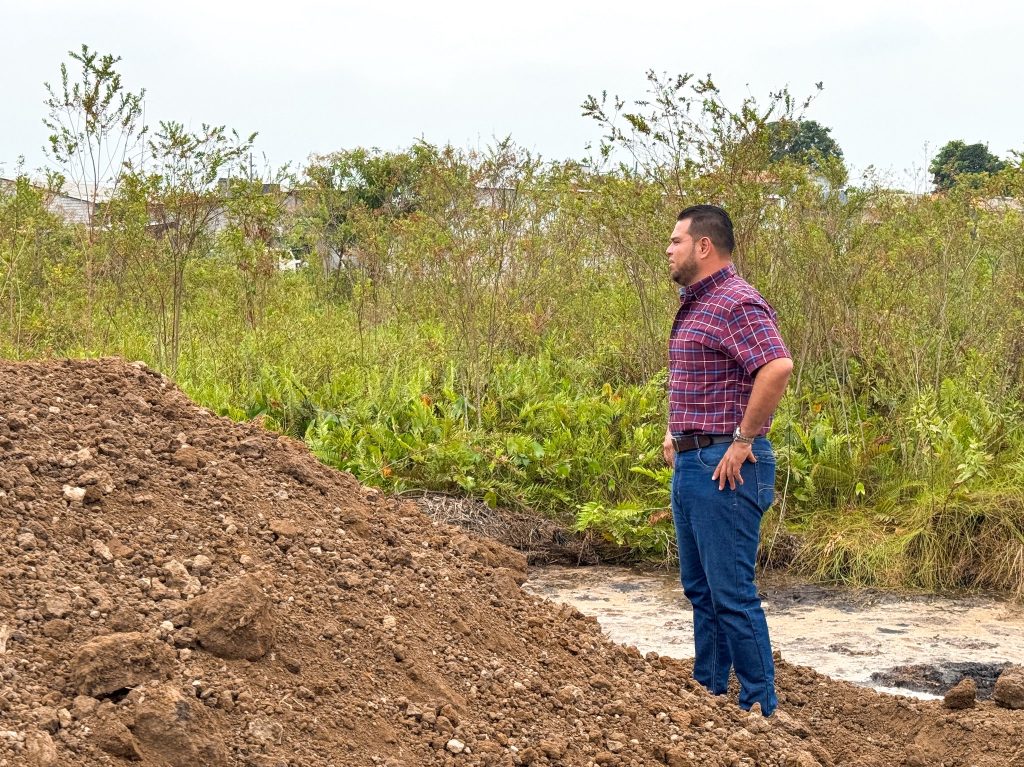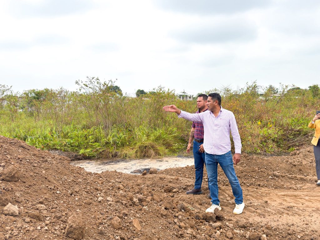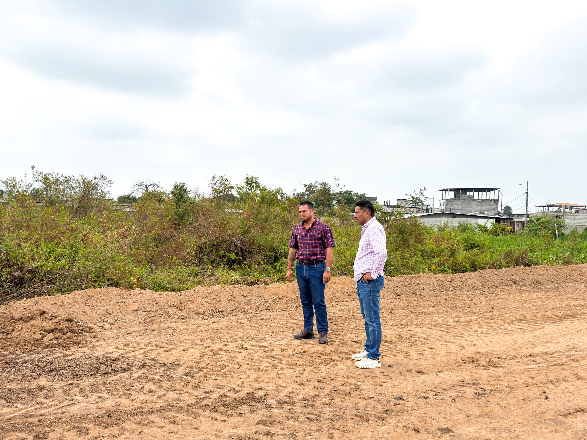 El relleno de la poza en el sector Fortunato Morán registra un importante avance. El alcalde Alfonso Montalvan Cerezo, junto al director de Obras Públicas, Miguel Ángel Lua, recorrió la obra y dialogó con los moradores del sector.