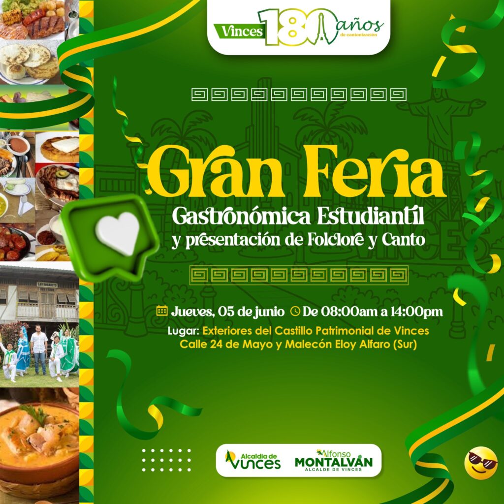 No te pierdas las actividades programadas para esta semana con motivo de la celebración de los 180 años de cantonización de Vinces.