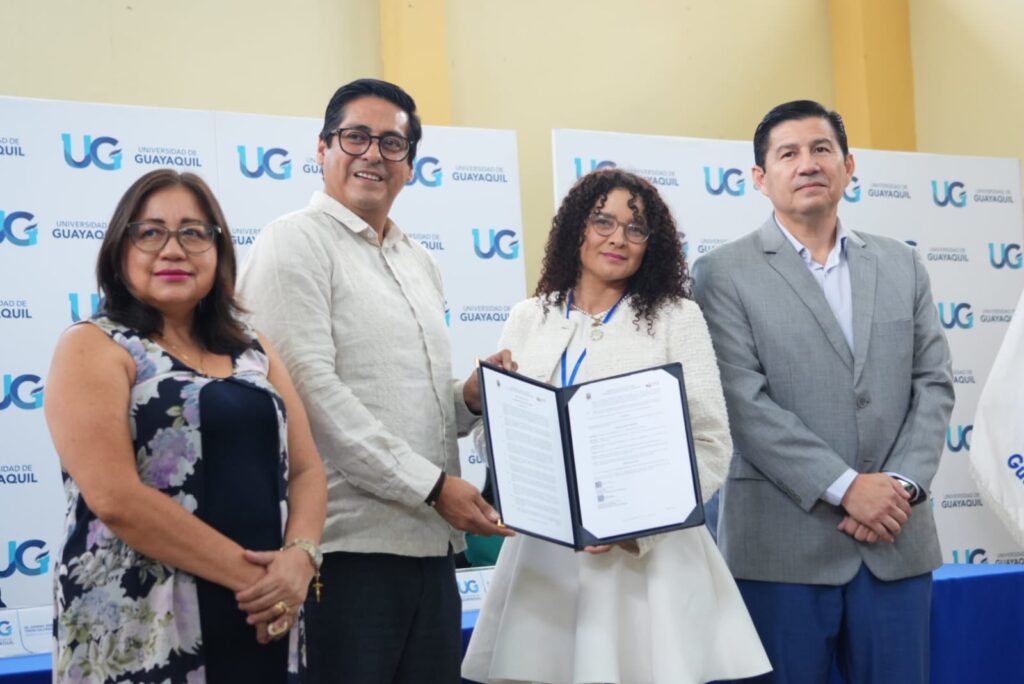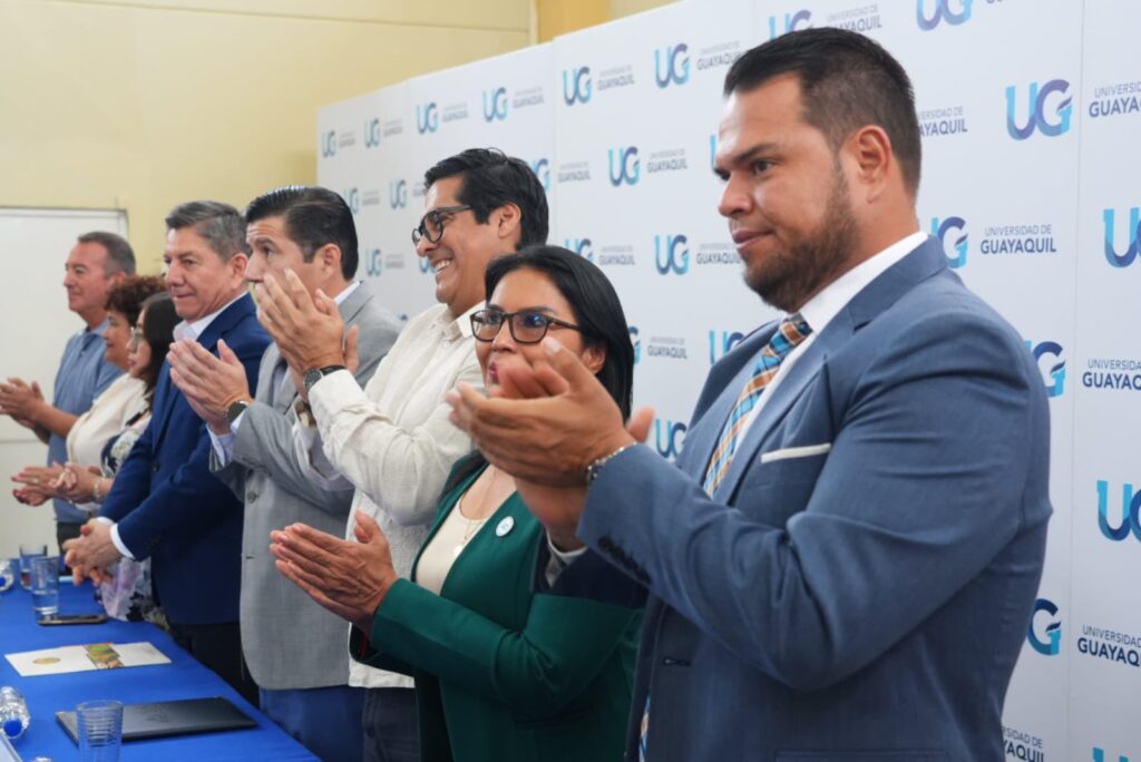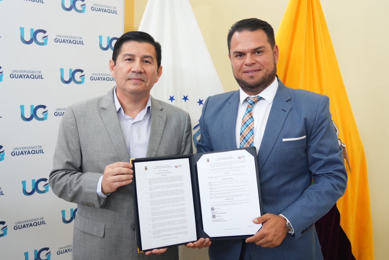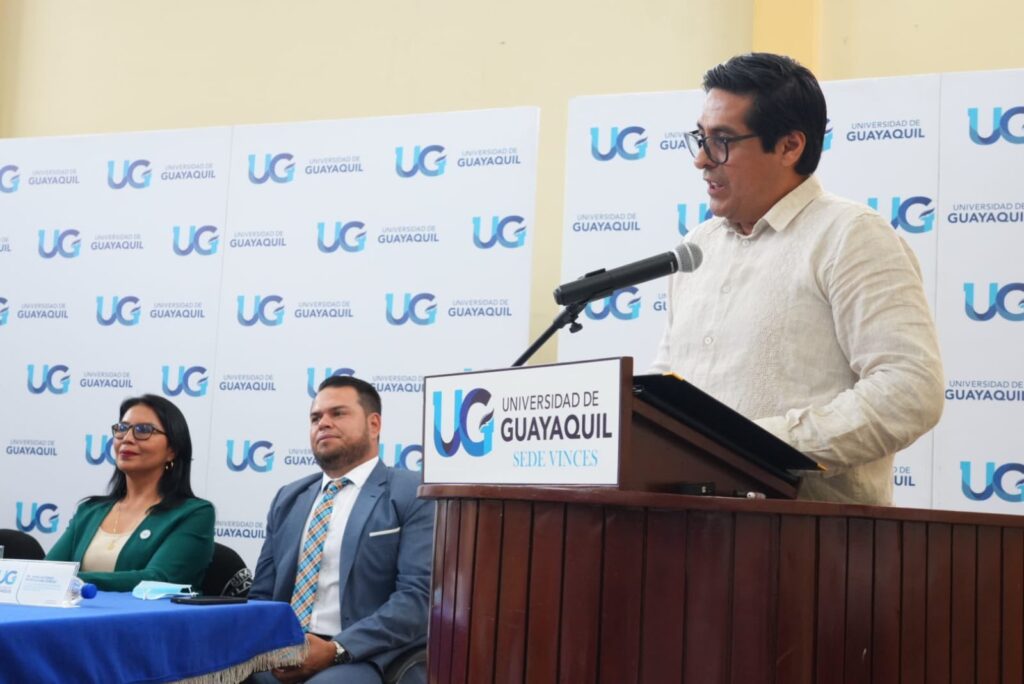 Con la presencia del alcalde Alfonso Montalvan Cerezo, se llevó a cabo el 𝐚𝐜𝐭𝐨 𝐝𝐞 𝐞𝐧𝐭𝐫𝐞𝐠𝐚 𝐝𝐞𝐥 ‘𝐀𝐜𝐮𝐞𝐫𝐝𝐨 𝐝𝐞 𝐂𝐫𝐞𝐚𝐜𝐢𝐨́𝐧 𝐝𝐞 𝐥𝐚 𝐒𝐞𝐝𝐞 𝐝𝐞 𝐥𝐚 𝐔𝐧𝐢𝐯𝐞𝐫𝐬𝐢𝐝𝐚𝐝 𝐝𝐞 𝐆𝐮𝐚𝐲𝐚𝐪𝐮𝐢𝐥 𝐞𝐧 𝐕𝐢𝐧𝐜𝐞𝐬’, evento que contó con la participación del Dr. Pablo Beltrán Ayala, presidente del Consejo de Educación Superior, y del Dr. Francisco Morán Peña, rector de la Universidad de Guayaquil.