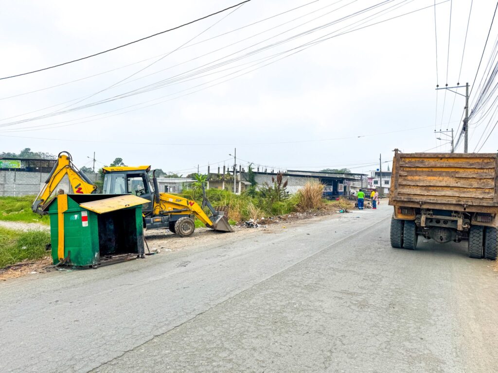 Atendiendo los constantes pedidos de vecinos de los sectores Albatros y La Minita, esta mañana el equipo de Gestión Ambiental retiró los contenedores de basura ubicados en la vía a Playas de Vinces, con el objetivo de recuperar el orden y la buena imagen del lugar.