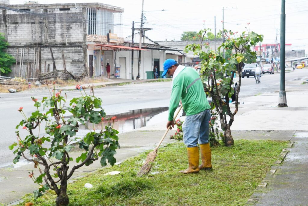 A través de la Dirección de Gestión Ambiental, se realizaron labores de jardinería, poda de árboles y roza con guadaña en puntos clave como la Av. Aquiles Carriel y la ciudadela Los Mirtos, específicamente en la calle Sexta.