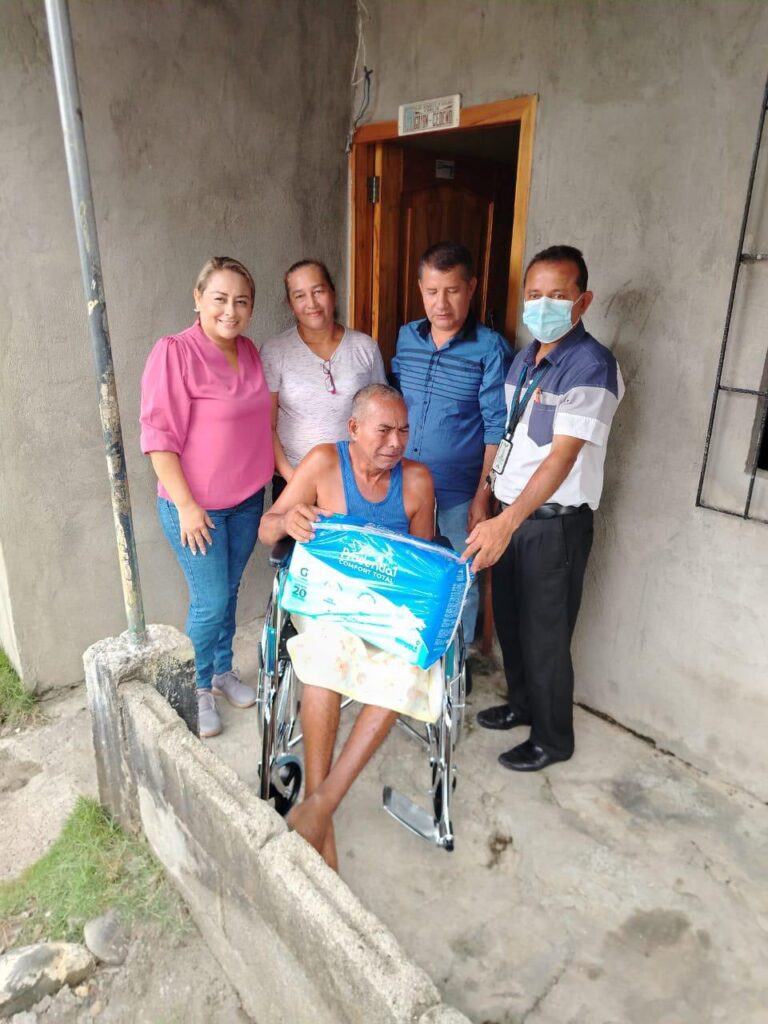 • Finalmente, el señor Walter Goyon Briones, del sector Puerta del Cielo, también fue beneficiado con una nueva silla de ruedas.