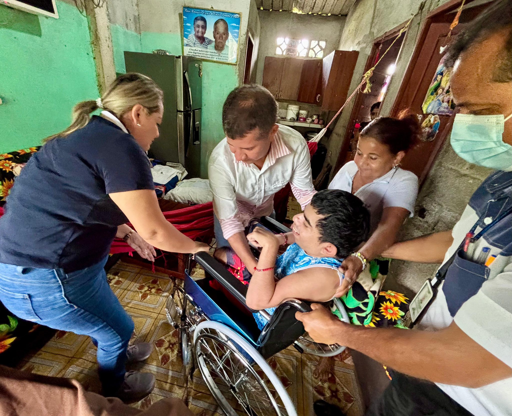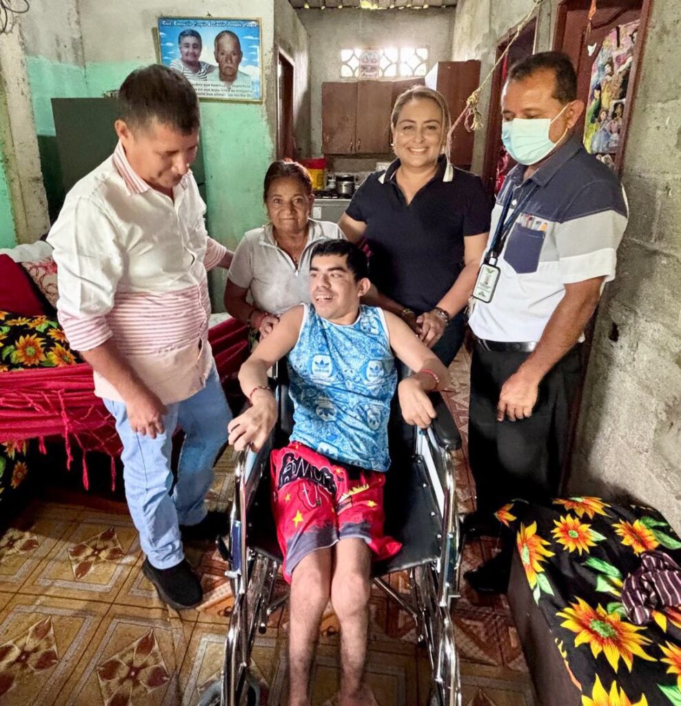 • El joven Máximo Banchen, del recinto Caña Quemada, recibió una silla de ruedas. Su madre, entre lágrimas, expresó su alegría al ver a su hijo movilizarse con mayor dignidad.