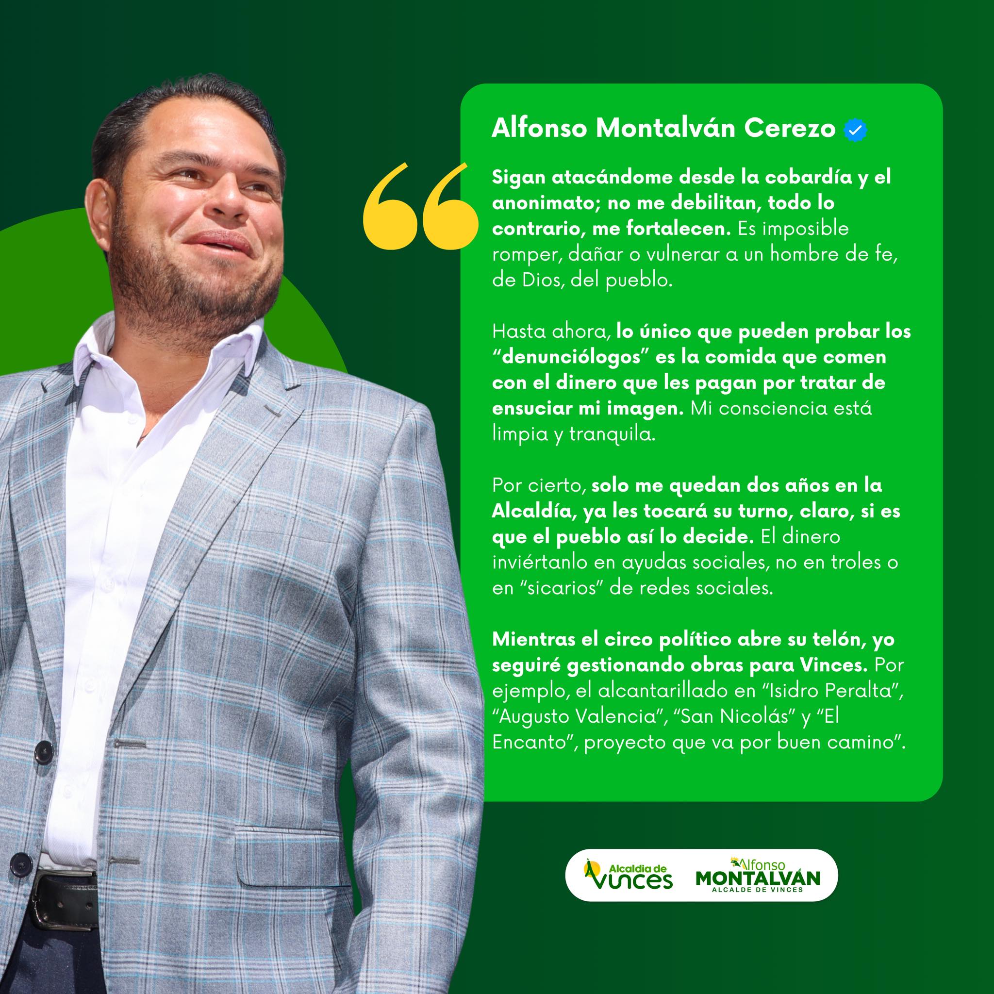 El alcalde Alfonso Montalvan Cerezo se pronuncia ante ataques infundados: