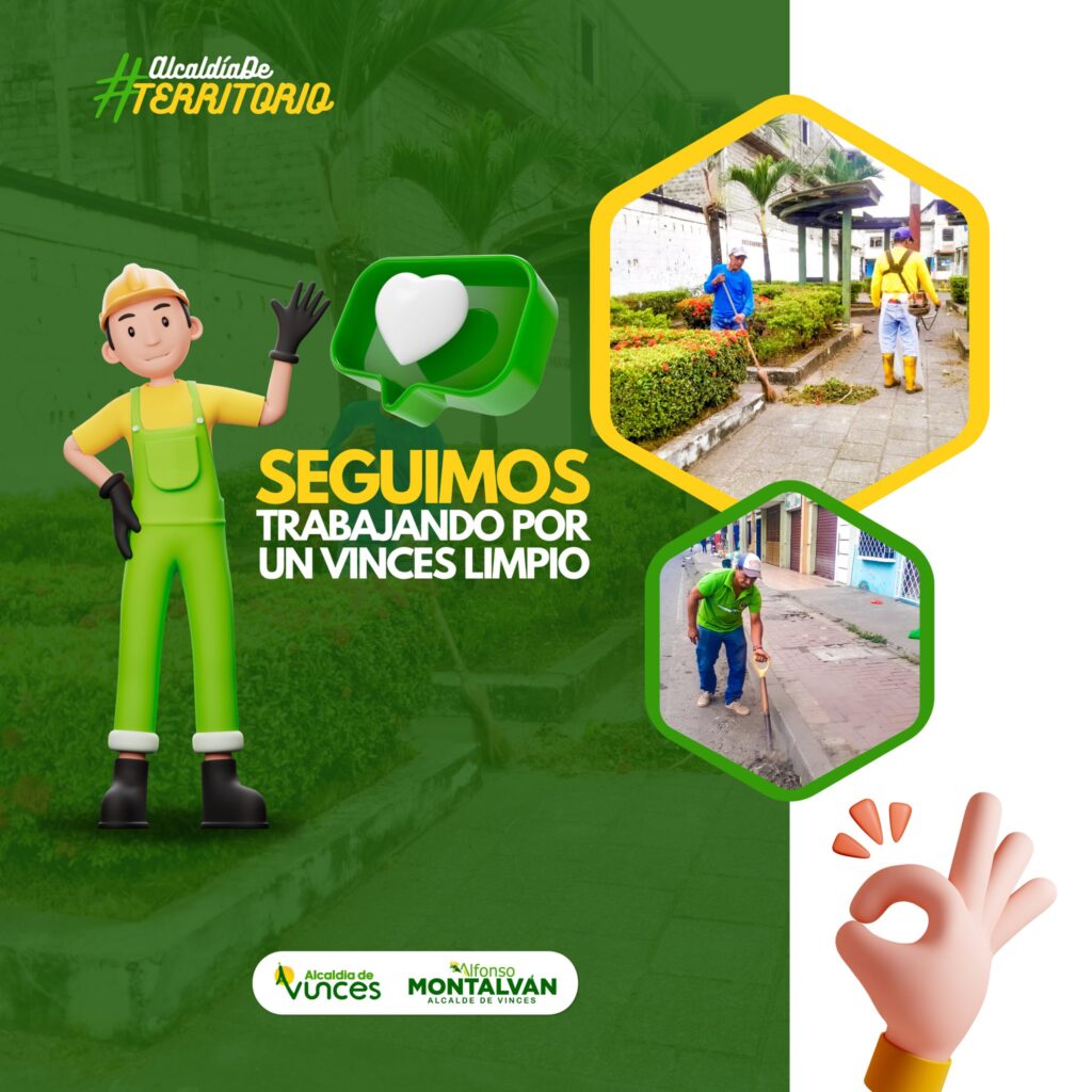 Estos trabajos se realizan de forma periódica gracias al esfuerzo coordinado entre la Alcaldía de Vinces y nuestro valioso equipo de obreros, bajo la gestión del alcalde Alfonso Montalvan Cerezo, quien impulsa un modelo de trabajo en territorio.