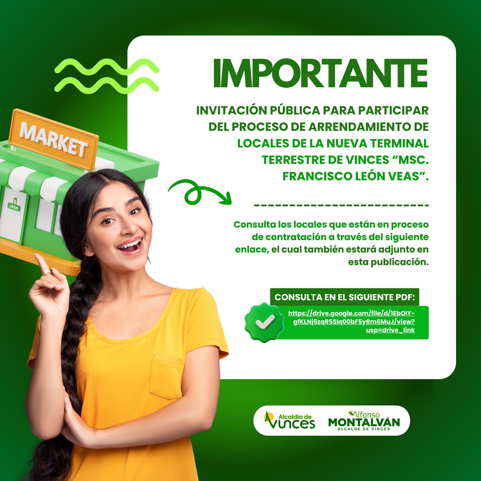 La Alcaldía de Vinces informa sobre el proceso de arrendamiento de locales comerciales en la nueva Terminal Terrestre “Msc. Francisco León Veas”.