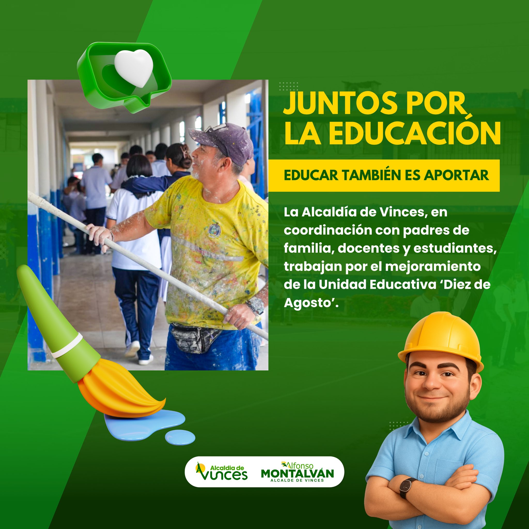 Esta acción colaborativa busca realzar la imagen de una de las instituciones educativas más emblemáticas de nuestro cantón, cuna de grandes profesionales vinceños.