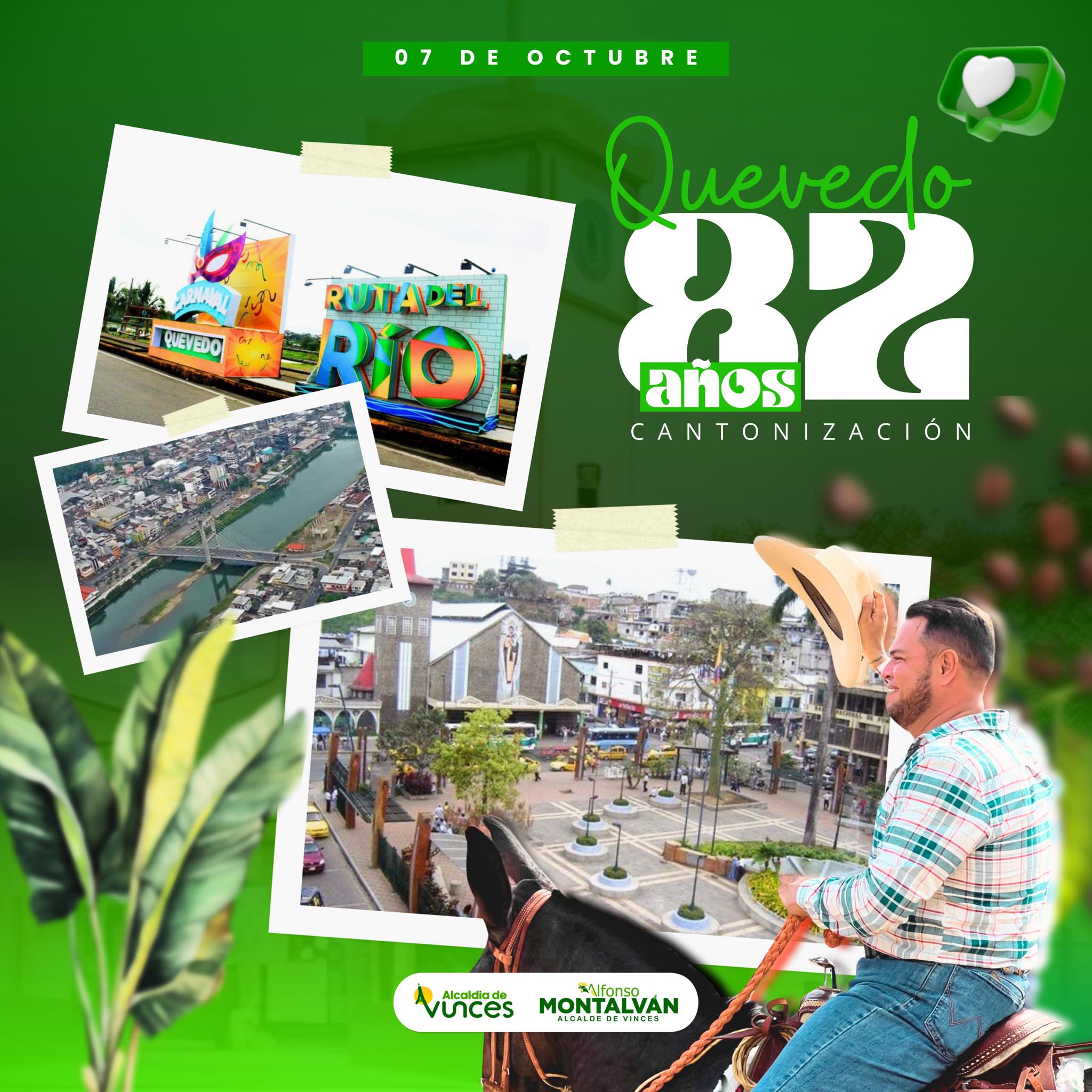 En esta fecha tan especial, hacemos llegar nuestras más sinceras felicitaciones a todos los quevedeños, hombres y mujeres que con esfuerzo, emprendimiento y compromiso han forjado el progreso de esta tierra.