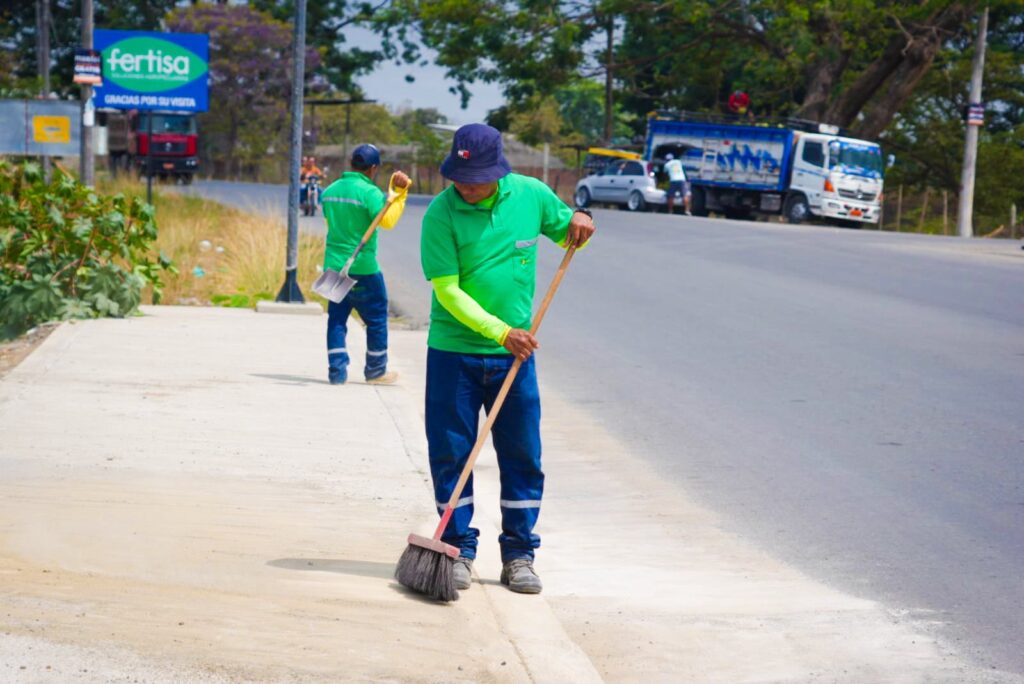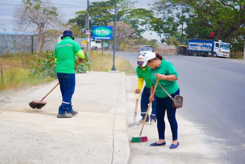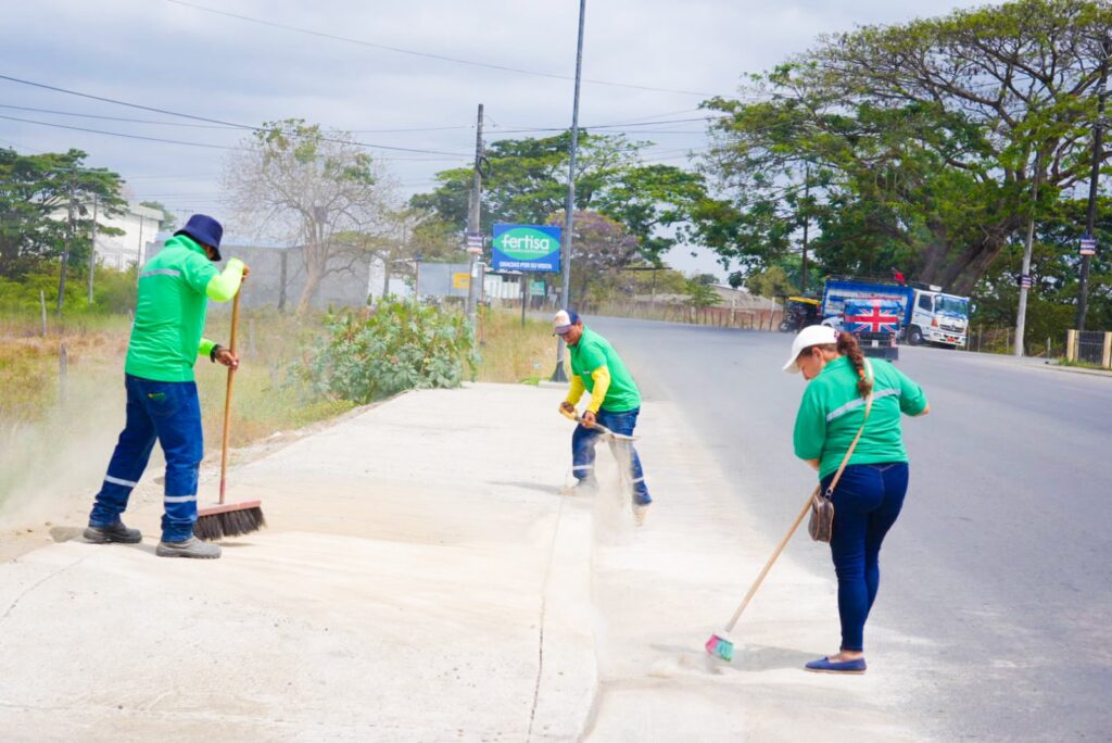 En la entrada a la urbe, por la vía Puerta del Cielo–Vinces, cerca de la sede de la Universidad de Guayaquil, se realizó la limpieza de cunetas para facilitar el drenaje y mejorar la imagen del sector.