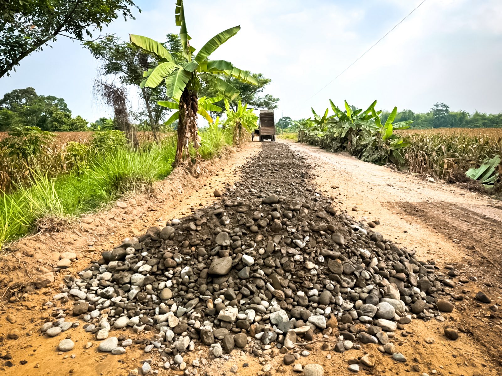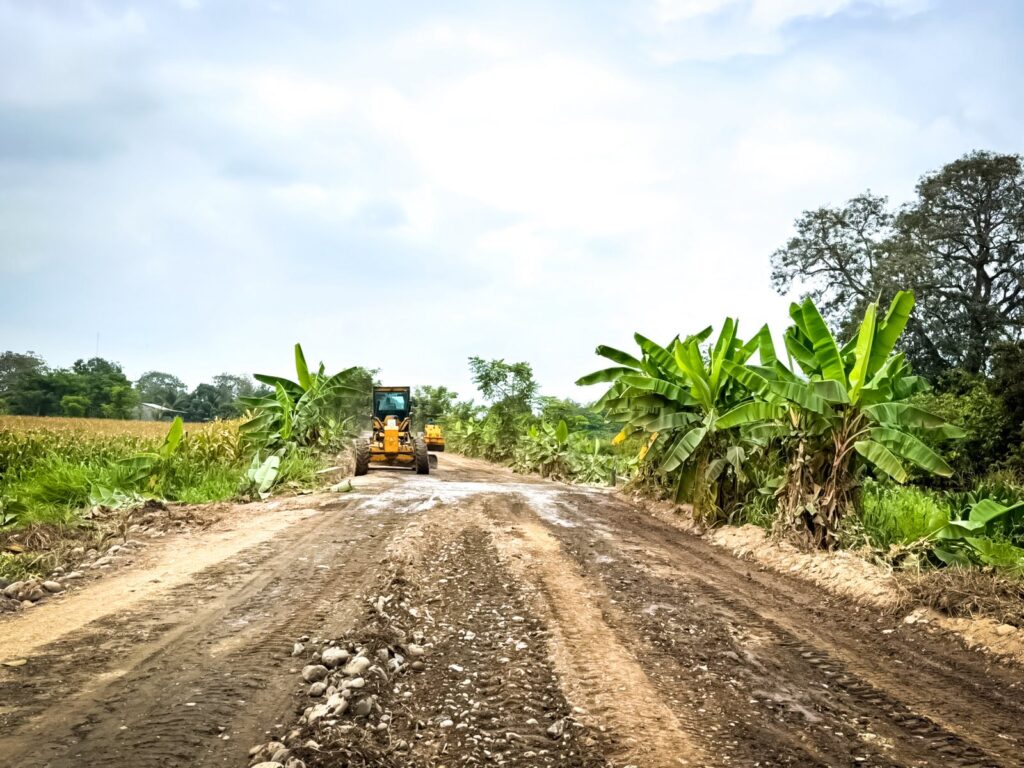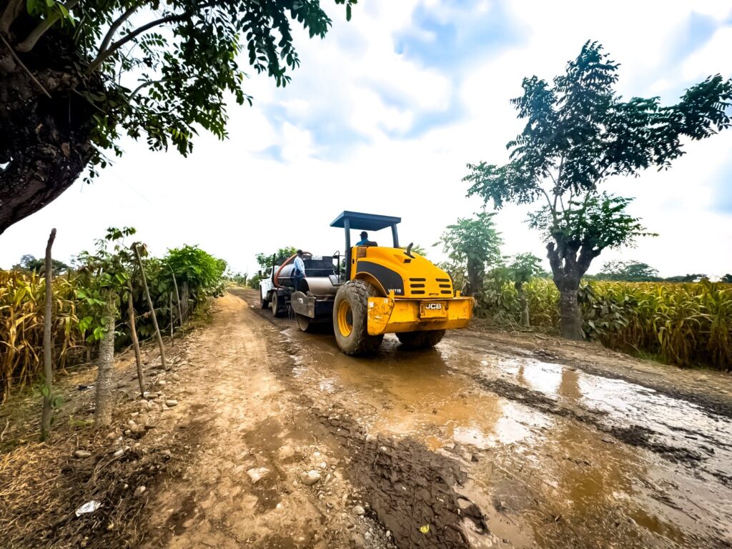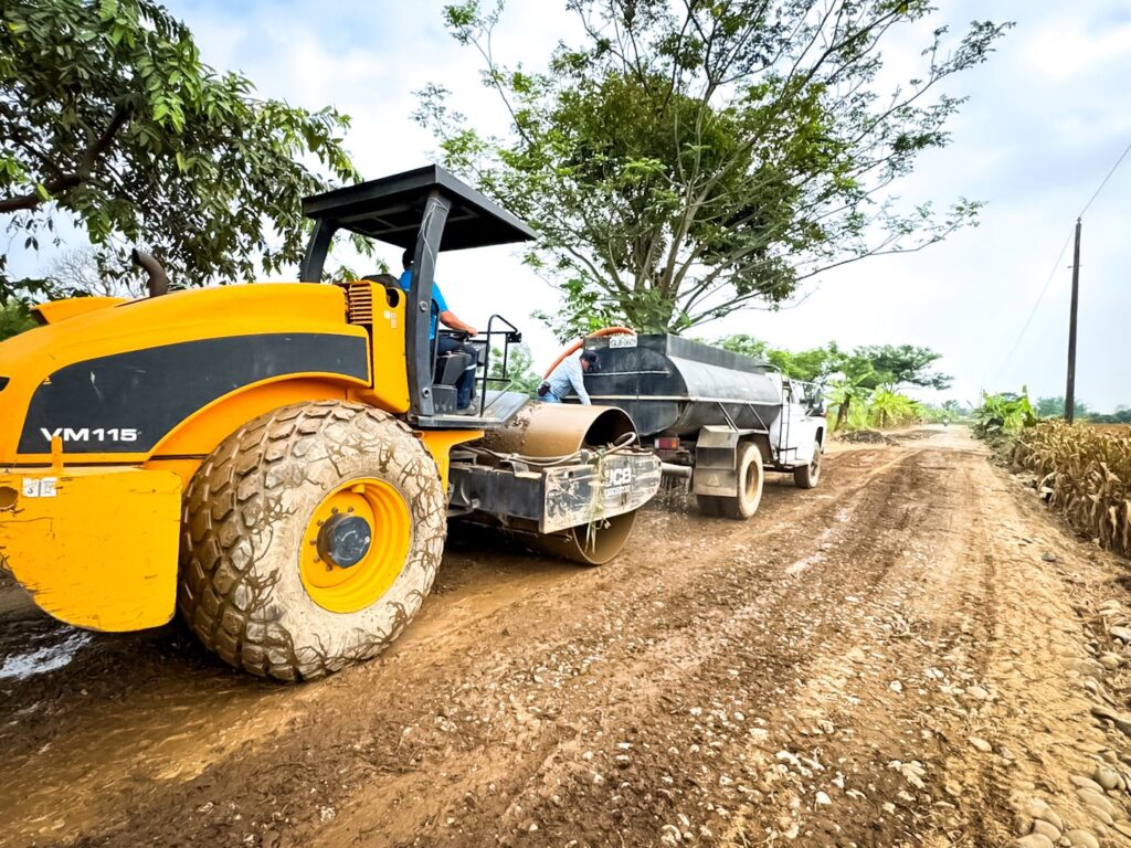 Avanzan los trabajos de mejoramiento vial desde el puente de Bagatela hasta la vía de Soberana, que incluyen nivelación del camino, compactación del suelo y limpieza de los costados de la vía para garantizar una mejor circulación y drenaje del agua.