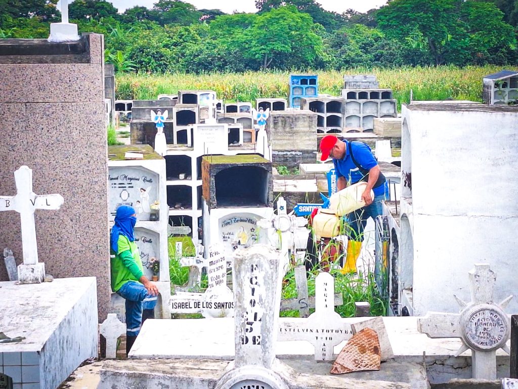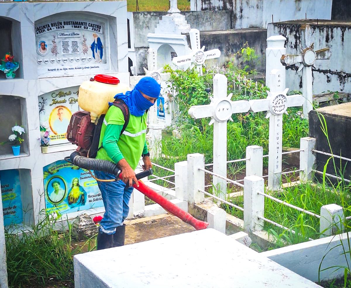 El personal de Obrero Municipal de la Dirección de Gestión Ambiental ejecuta fumigaciones en el Cementerio General de Vinces y realiza limpieza de cunetas en distintos sectores del cantón.