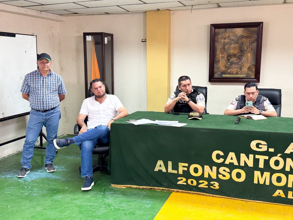En la sala de sesiones de la Alcaldía de Vinces se llevó a cabo una importante reunión de trabajo presidida por el alcalde Alfonso Montalván Cerezo, junto al jefe del Distrito de la Policía Nacional, Tcnl. Jaime Estrada Chávez; el comisario de Policía, Harold Díaz; la jefa política de Vinces, Yomira Vargas; y el secretario de coactiva del GAD Municipal y administrador de Plaza París, Belarmino Macías.