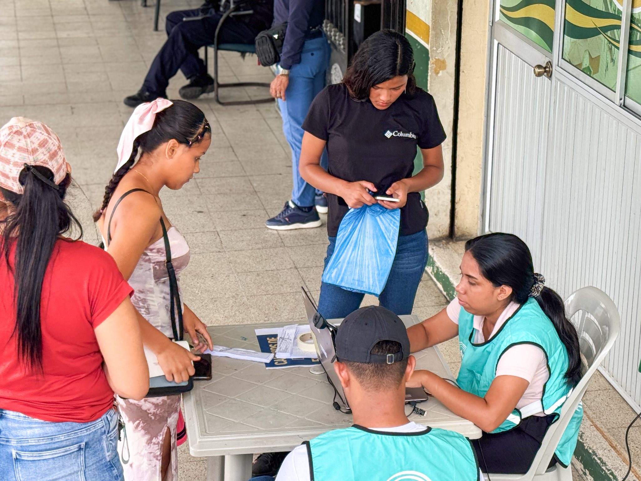 En los exteriores del GAD Municipal de Vinces se lleva a cabo la brigada del Consejo Nacional Electoral (CNE) destinada al cambio de domicilio electoral.