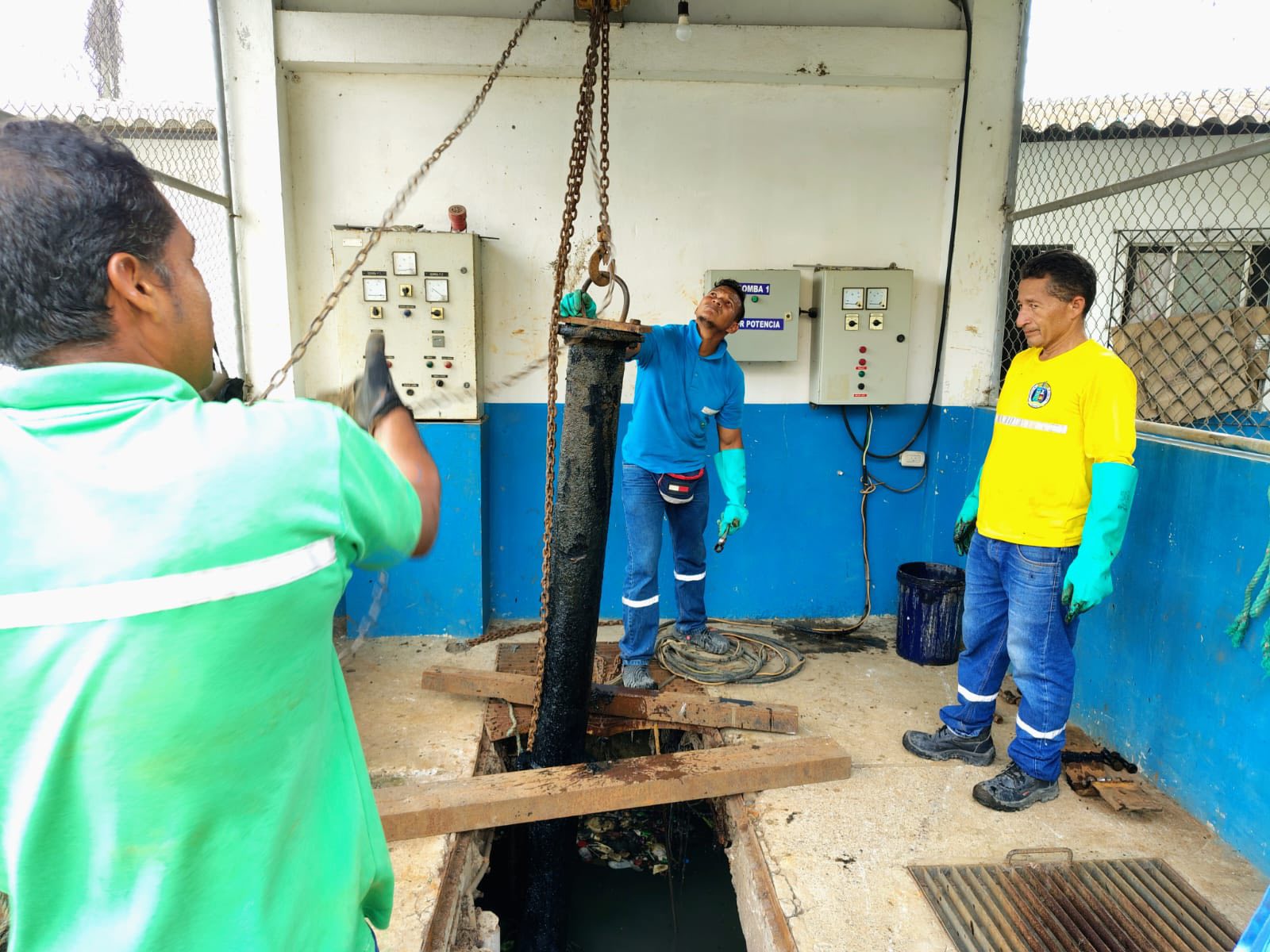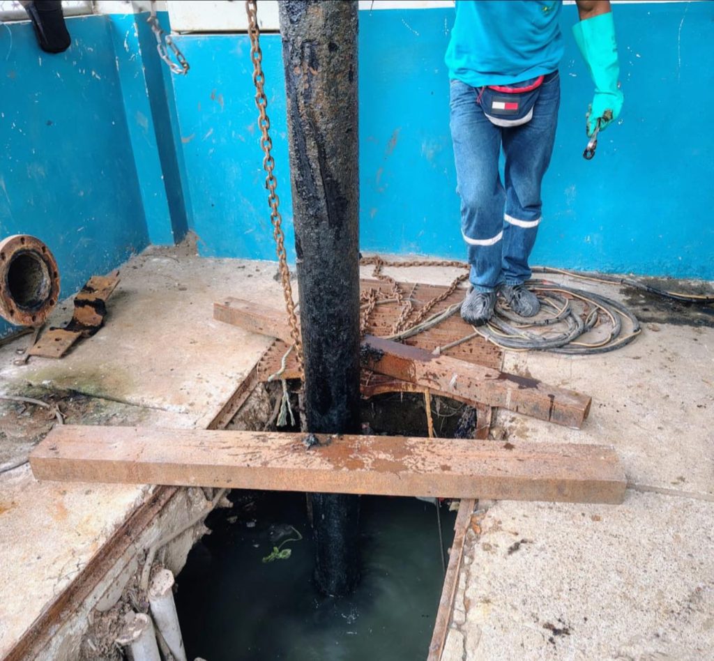 Personal de obreros de la Dirección de Agua Potable y Alcantarillado del GAD Municipal de Vinces se encuentra realizando labores de mantenimiento en la estación de bombeo ubicada en la parroquia urbana San Lorenzo “Nicaragua”.