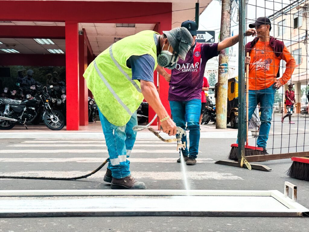 A través de la Unidad de Tránsito Municipal, se está llevando a cabo el pintado de señaléticas viales en distintos