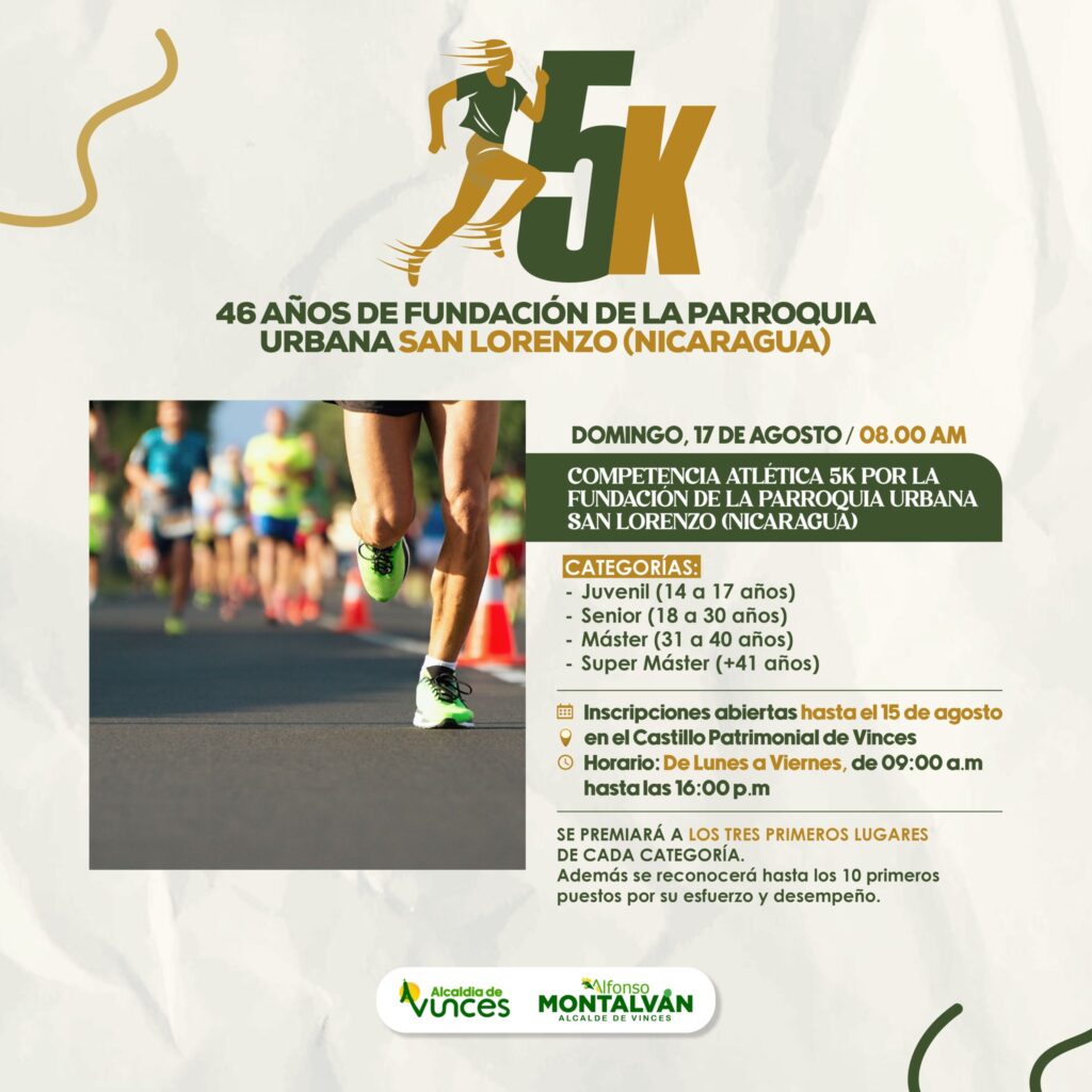 Este domingo 17 de agosto a las 08:00 AM te invitamos a participar en la 𝐂𝐨𝐦𝐩𝐞𝐭𝐞𝐧𝐜𝐢𝐚 𝐀𝐭𝐥𝐞́𝐭𝐢𝐜𝐚 𝟓𝐊 𝐩𝐨𝐫 𝐥𝐨𝐬