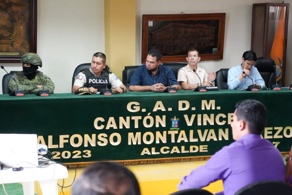 En el auditorio del Gobierno Municipal del cantón Vinces se llevó a cabo la reunión de la Mesa de Seguridad,