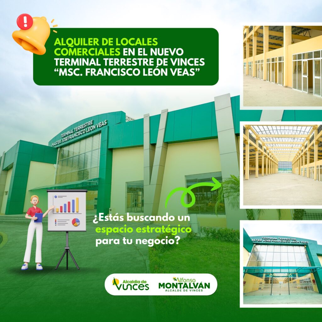 El Nuevo Terminal Terrestre de Vinces “Msc. Francisco León Veas” abre la convocatoria para el alquiler de locales comerciales, ideales