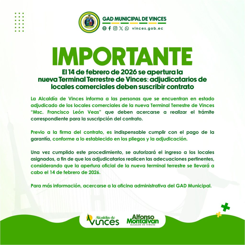 El 14 de febrero de 2026 se apertura la nueva Terminal Terrestre: adjudicatarios de locales comerciales deben suscribir contrato
