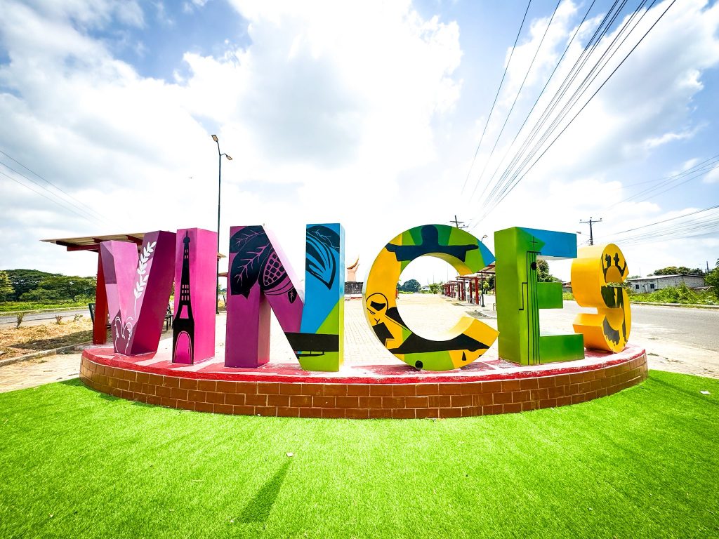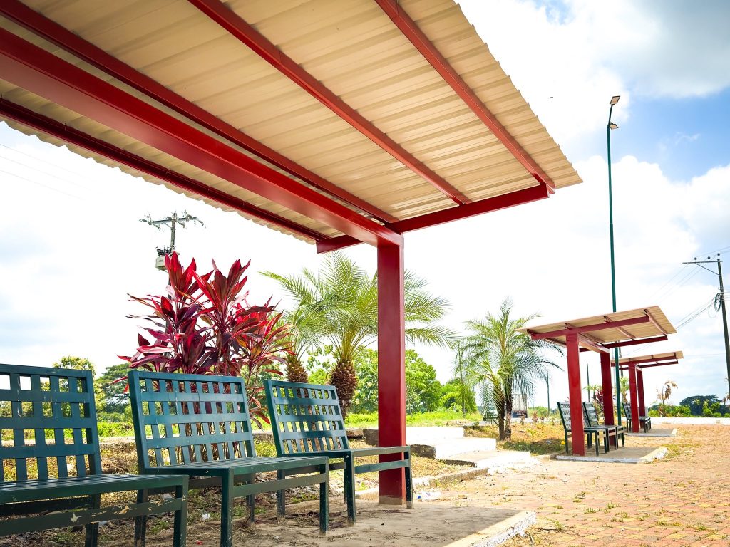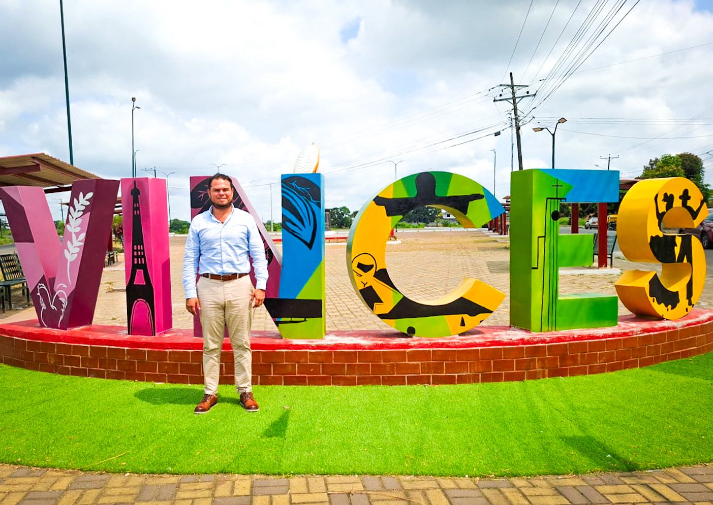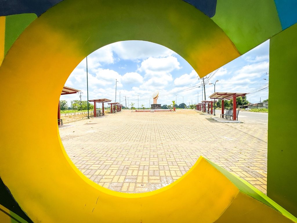 Una de las principales entradas a Vinces, como lo es el monumento al cacao ubicado en el bypass de la vía Vinces – San Juan, luce completamente renovada. Este importante espacio ahora cuenta con modernas letras corpóreas, áreas de descanso con techado, iluminación y nuevos detalles que realzan su atractivo y fortalecen nuestro ornato urbano.