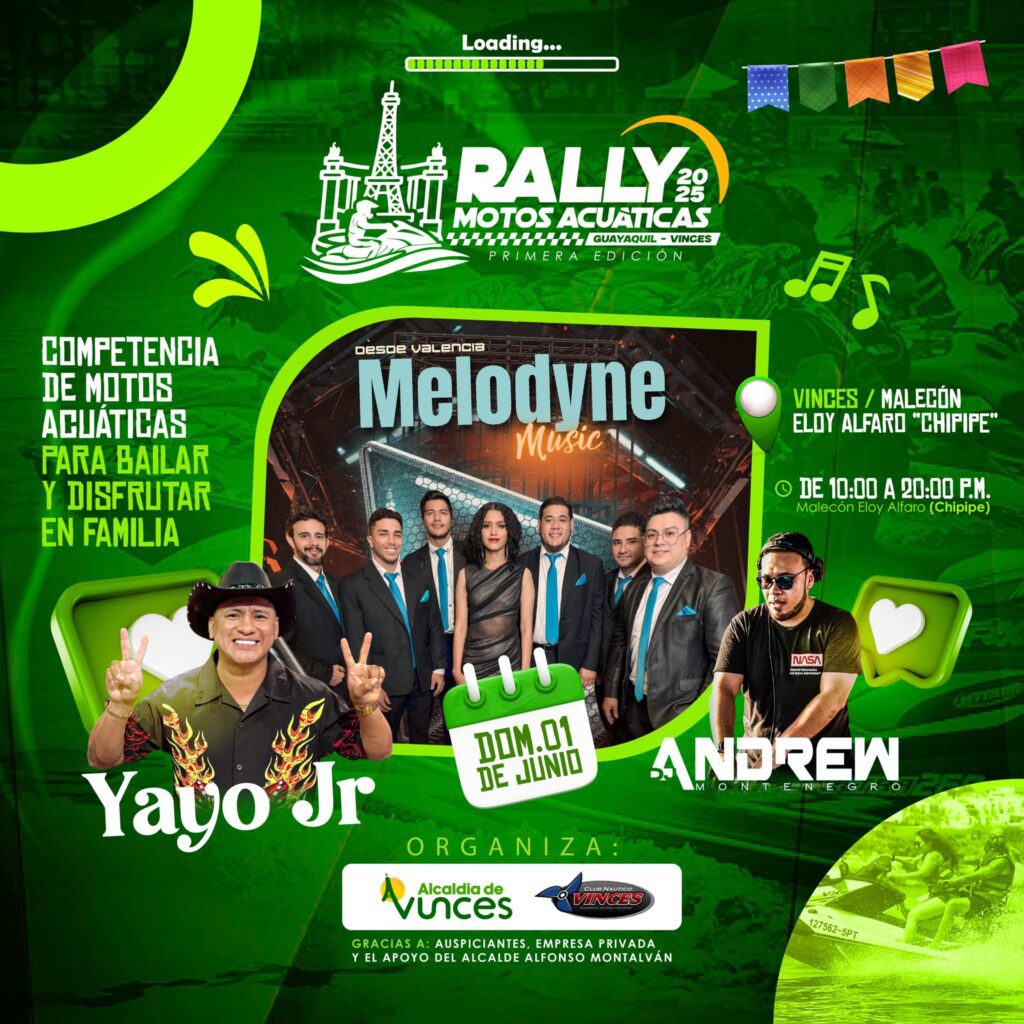 ¡Llega el gran Rally de Motos Acuáticas 2025 (Guayaquil – Vinces / Primera Edición! Vinces / Malecón Eloy Alfaro “Chipipe”