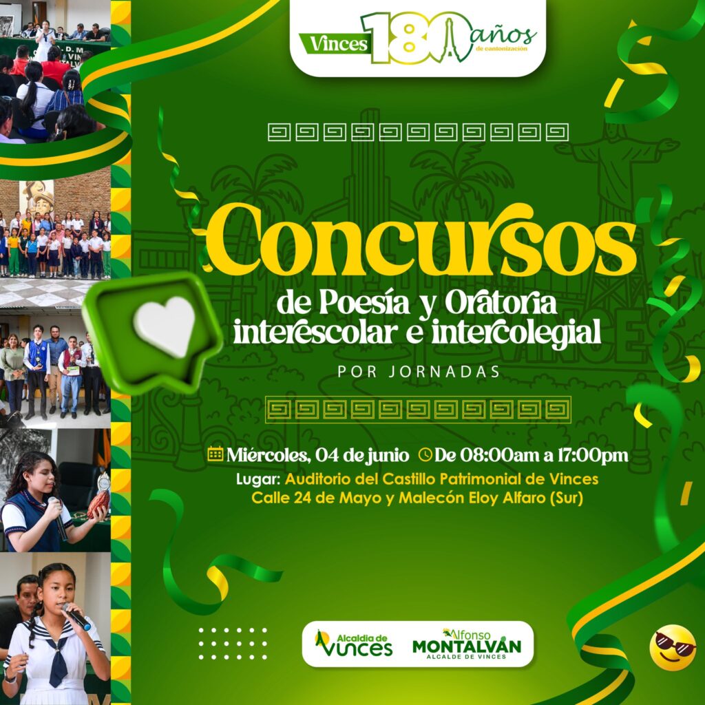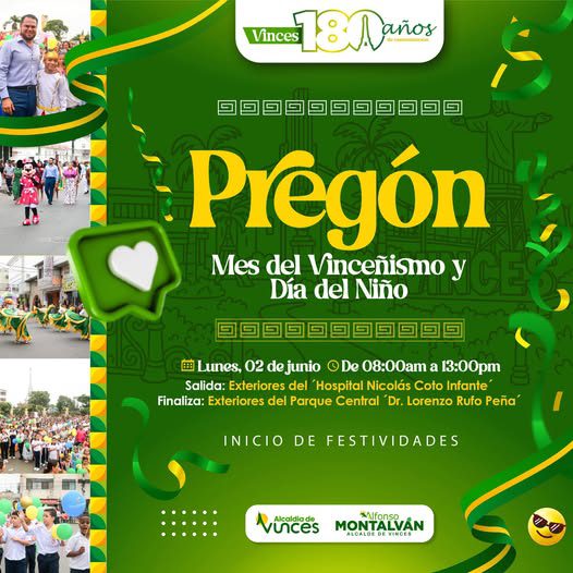 La Alcaldía de Vinces, liderada por el alcalde Alfonso Montalvan Cerezo, tiene el honor de presentar el cronograma oficial de