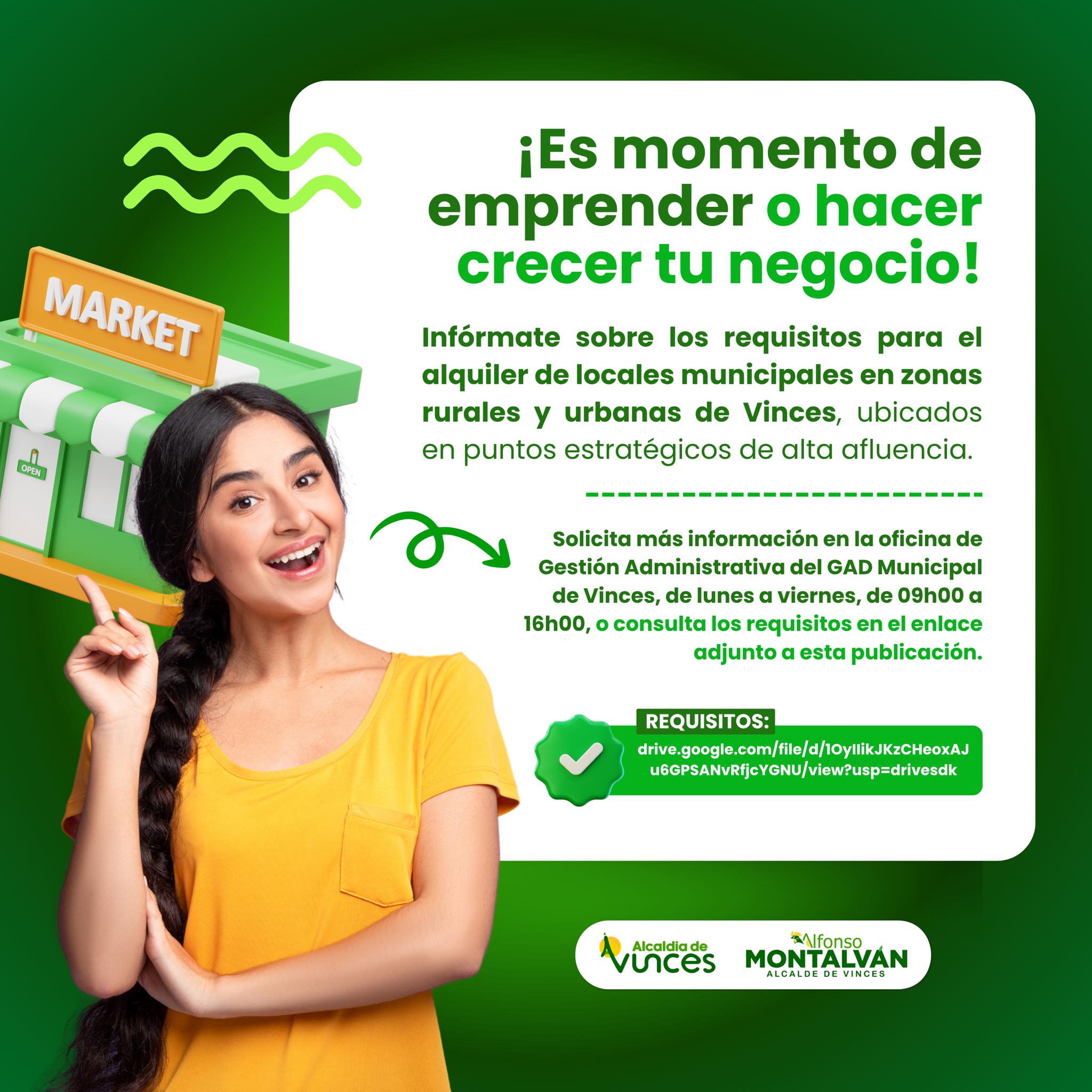 La Alcaldía de Vinces pone a tu disposición locales municipales en zonas rurales y urbanas, ¡estratégicamente ubicados para hacer despegar tu emprendimiento!