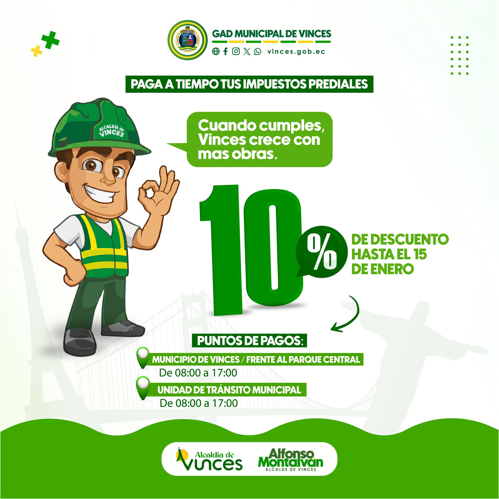 Recuerda que este beneficio disminuye de forma progresiva cada quincena, por eso este mes es el mejor momento para ahorrar y seguir aportando al desarrollo de nuestro cantón.