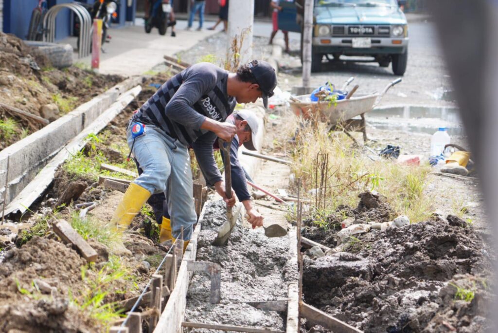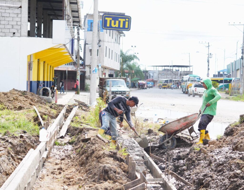 En la avenida Ernesto Guevara, diagonal al Destacamento de Policía, la Alcaldía de Vinces trabaja en la construcción de aceras y bordillos, mejorando la seguridad y movilidad de los peatones que transitan por esta importante vía.